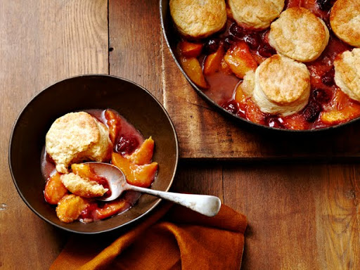 Transfer the skillet to the oven and bake until the fruit is bubbling and the biscuits are cooked through, about 25 minutes. (If the biscuits are browning too quickly, cover loosely with foil.) Let cool slightly before serving.