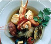 Bring the fish stock to a boil; add the leek, garlic, and onions. Put thyme and bay leaves in a cheesecloth. Add tot he fish stock with the tomatoes, potato, pernod, and saffron; poach for 45 min. Mix all in a food processor. Put aside. Dice the salmon, sea bass, shrimp, scallops, and crawfish in 1 oz pieces. Set aside. in a separate pain, steam the mussels and clams with white wine. Bring the bouillabaisse sauce back to boil and add all seafood but mussels and clams; simmer for 5 min. Add mussels and clams at the end. To prepare rouille sauce for croutons, combine mayo, olive oil, habanero pepper, egg yolks, salt, roasted garlic clove, and a pinch of saffron. Spread the rouille on croutons.