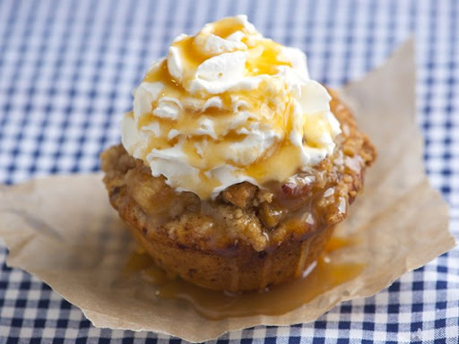 Serve cupcakes topped with whipped cream and a drizzle of syrup.