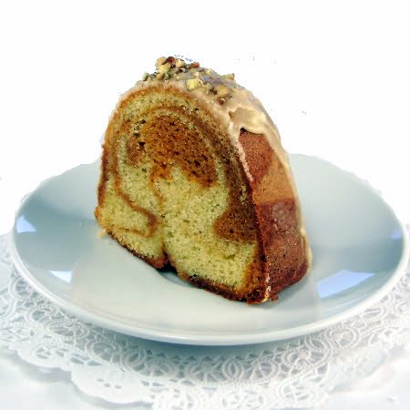 5) For glaze, in a small saucepan, combine the butter, brown sugar and milk. Bring to a boil. Remove from the heat; add confectioners' sugar and vanilla. Beat until smooth and creamy. Drizzle over cake; sprinkle with pecans. Yield: 12 servings.