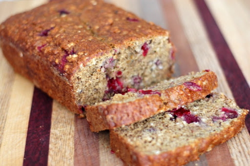 By Melissah, After all the Christmas treats I thought it was time for a “healthier” snack. I also needed to get rid of some grossly black bananas and the cranberries that have been sitting in my freezer since October. I’m proud of this recipe. I usually am not able to combine ingredients in a way that produces edible food– I’m a recipe follower– but this time I remembered some of my mom’s tips about health-i-fying recipes and actually made something tasty. The best part is, it’s not too bad for you, so you don’t even have to feel guilty about eating it for breakfast.