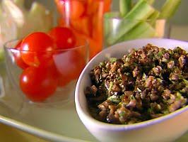 Transfer the olivada to a small dipping bowl and place on a serving platter. Arrange the carrots, cucumber, fennel, and cherry tomatoes around the olivada. Serve.