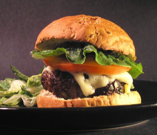 Be hungry when you make this: it's a big, wholesome burger. Garlic and swiss cheese, with the Dijon mustard, are probably more important than the mushrooms to the identity of this recipe. I used iceberg lettuce because that's what was on hand; the romaine would have been nice.
