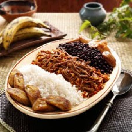 4. Arrange meat, black beans, rice and plantain on platter and serve.