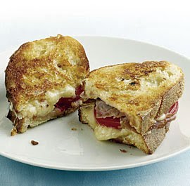 Three kinds of cheese, salty prosciutto, fresh tomatoes, and a touch of spice make this anything but your everyday grilled cheese sandwich. Serve with a lightly dressed green salad.