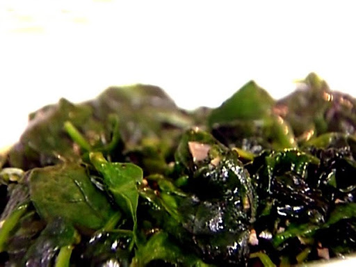 Rinse the spinach well in cold water to make sure it's very clean. Spin it dry in a salad spinner, leaving just a little water clinging to the leaves.