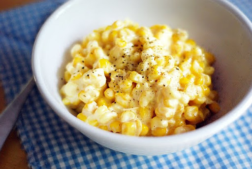 Throw all the ingredients, without any sort of ceremony or circumstance, into a crockpot on medium or low for at least 4 hours. If you need it done faster, cook it on the stove or on high in the crockpot, but be prepared to sacrifice a little of the savory goodness that results when corn is allowed to soak in dairy for hours. All of the cream cheese pieces should be completely melted and will easily break down and combine with the cream and butter to make the ‘gravy’.