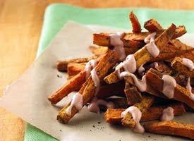 3 Bake 35 to 40 minutes, turning once, until potatoes are lightly browned and tender. Meanwhile, in small bowl, mix all sauce ingredients. Serve sauce with fries.