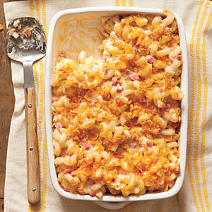 Ham-and-Broccoli Macaroni and Cheese: Stir 1 1/2 cups frozen broccoli florets, thawed and coarsely chopped, into pasta mixture.