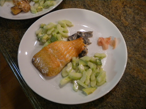 SOY-GLAZED SALMON WITH CUCUMBER-AVOCADO SALAD