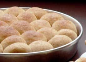 4 Punch down dough. Cut dough in half; cut each half into 24 pieces. Shape into balls. Place close together in pans. Brush with butter. Cover and let rise in warm place about 30 minutes or until double.