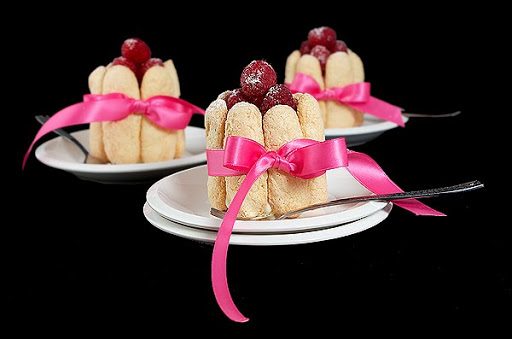 10.Carefully tie ribbon around charlottes, securing with a bow.