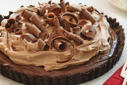 6. Discard plastic wrap. Spread Coffee Cream over tart. Garnish with chocolate curls, if desired.