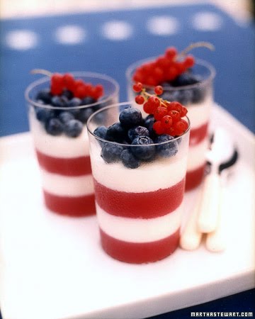Spoon 3 to 4 tablespoons panna cotta over currant gelatin in each glass; set remaining panna cotta aside. Refrigerate glasses until panna cotta is set, about 1 hour. Repeat with another layer of currant gelatin and panna cotta. If either mixture becomes too firm, set over a pot of simmering water until softened.