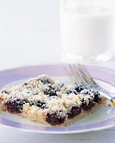 Juicy blackberries melt into an almond-flavored crust made from a quick shortbread dough, some of which is also used as a crumbly topping.