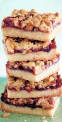 3. Combine reserved dough, peanuts, and peanut butter chips; crumble over jam layer. Bake until topping is golden brown, 45-50 minutes. Let cool completely in pan on a wire rack. Run a sharp knife around edges, then, using parchment, lift cake from pan and cut into 12 squares. (Store in an airtight container, up to 1 week).