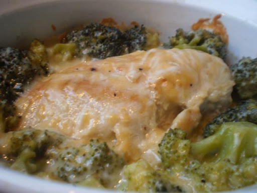 Spread broccoli across a 13 x 9 x 2" baking dish. Pour half the sauce over. Top with chicken slices. To the remaining sauce add parmesan cheese. Pour over chicken. Sprinkle with extra parmesan cheese. Bake for 20 minutes. Broil until golden.