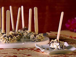 Place a small tray or a plate in the freezer. Remove the gelato from the freezer to soften, about 5 minutes. Remove the chilled tray from the freezer. Scoop out 16 bite-sized balls of gelato and place in the freezer for at least 1 hour. Remove from the freezer and quickly insert a wooden popstick into each gelato ball. Return them to the freezer for at least 1 hour.
