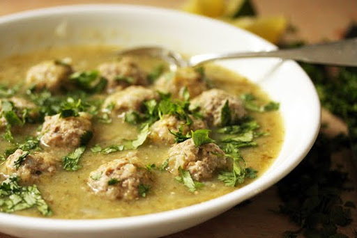 7. Place 4 meatballs in each large, warm soup bowl. Ladle about one cup of soup over the meatballs, and squeeze lime juice into each bowl. Sprinkle with chopped cilantro and serve immediately.