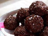 Combine the sprinkles and salt in a bowl. Using your hands roll the chocolate mixture into small balls, about 1 inch in diameter. Roll them in the chocolate sprinkle/salt mixture until they are generously coated. Place on serving tray or store them in an airtight container.