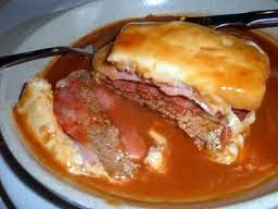 Pour the sauce over the sandwich (should be hot, so the cheese melts).
