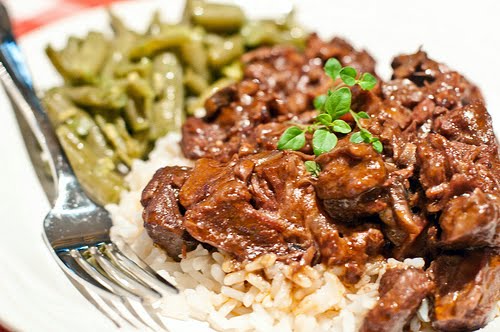- 3 pounds beef roast with most fat trimmed, cut in 2 inch cubes