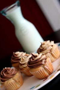 While the cupcakes are cooling, prepare the frostings. For both frostings, just combine all the ingredients for each one and whip until light and fluffy, adding additional milk as needed.
