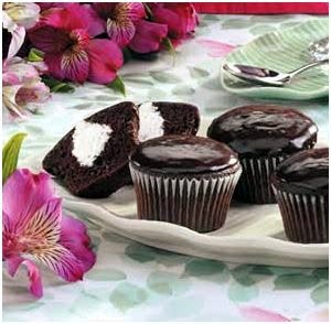 Cut a small hole in the corner of pastry or plastic bag; insert round pastry tip. Fill the bag with cream filling. Push the tip through the bottom of paper liner to fill each cupcake.