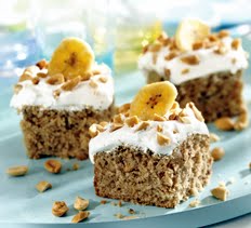 2. Beat peanut butter, brown sugar and butter in large bowl at medium-high speed 2 to 3 minutes or until smooth. Beat in egg and vanilla until blended and smooth. At low speed, beat in flour mixture alternately with milk just until smooth, beginning and ending with flour mixture. Stir in 1/2 cup banana chips. Spread batter in pan.