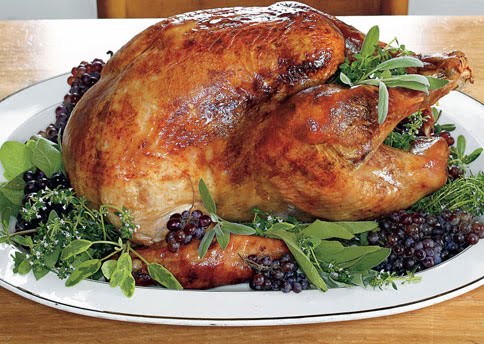 A bacon-herb butter goes under the skin before roasting, which infuses the turkey with flavor. Be sure to get started at least one day ahead.