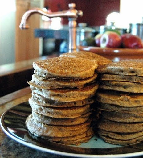 Blend all ingredients in a blender until smooth. Cook on a greased or buttered griddle until golden brown on each side.