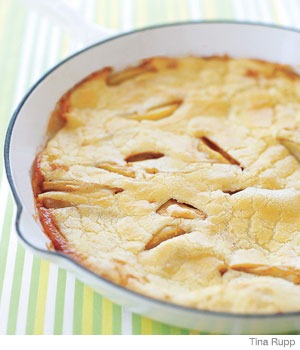 Spread apples evenly in skillet. Pour batter over the top. Bake about 20 minutes, until no moist spots are left in batter.