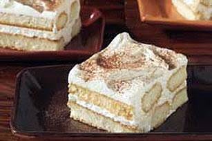 ARRANGE 1 package of the ladyfingers on bottom of 13x9-inch baking dish. Dissolve combined coffee granules and 1 Tbsp. sugar in boiling water. Brush 1/2 cup of the coffee mixture onto ladyfingers in dish.