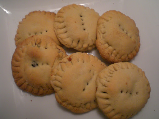 Make dough, roll fairly thin and cut into rounds. Spread with date mix and crimp edges.