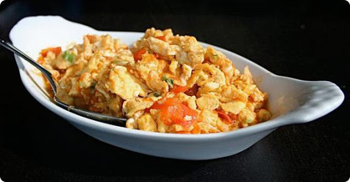 Combine the eggs with the sauce. If it looks too dry, add just a splash of water. Gently stir-fry for about 1 minute.