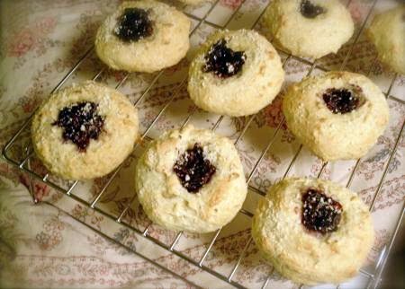 To prepare cookies, use a measuring 1/2 tsp to make a small indentation in the center of the cookies. Add filling.