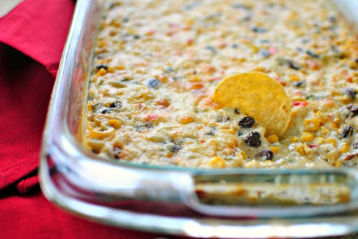 Combine the corn, black beans, green chilies, onions, mayo, sour cream and both the grated Monterey and pepper jack cheese. Stir until combined and season with salt to taste.