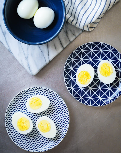 Insert the tip of a probe thermometer into the water, and set the alarm for 209°F. Bring the eggs to a boil over medium-high heat. The thermometer will sound the alarm when the water is about to come to a boil. Let boil for 1 minute, then immediately take the saucepan off the heat, cover, and let sit for 8 – 10 minutes.
