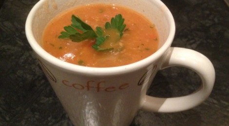 After the pot has simmered for another 5 minutes take it off the heat and pureé with a hand blender. Check the seasoning and adjust for your taste. Serve with a couple of parsley leaves on top and a big bit of crusty bread.