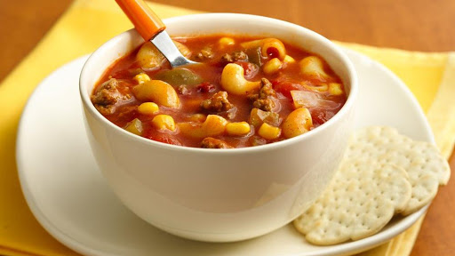 Reduce heat; cover and simmer 5 minutes, stirring occasionally. Stir in uncooked pasta (from Hamburger Helper box), corn and olives. Cover; cook 10 minutes longer.