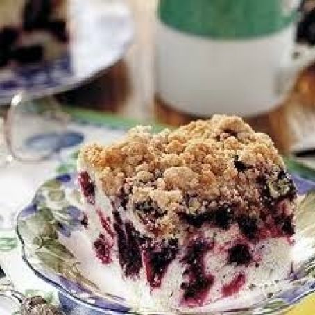 Mix together first seven ingredients. Fold in blueberries. Spread into a greased 8x8-inch pan. Mix together all ingredients for topping and sprinkle on top. Bake for 35 to 40 minutes.
