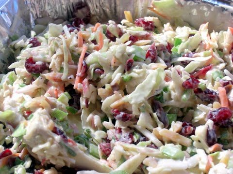 Delicious coleslaw packed with cranberries, almonds, chopped green pappers, hint of honey mustard dressing!