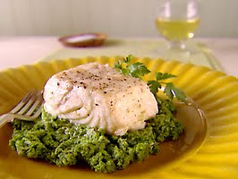 Halibut Poached in Olive Oil with Broccoli Rabe Pesto
