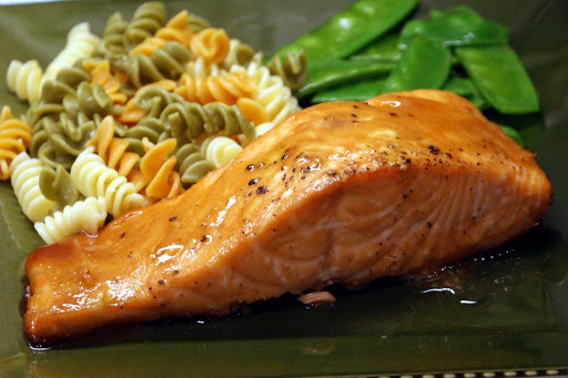 Season the salmon with salt and pepper and arrange onto the prepared broiler pan. Whisk together the brown sugar and Dijon mustard in a small bowl; spoon mixture evenly onto top of salmon fillets.