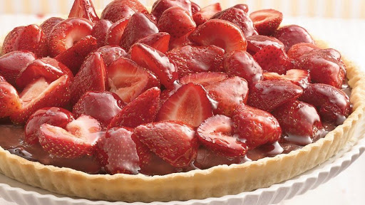 Beat cream cheese and remaining 1 tbs whipping cream, sugar lemon juice and zest until smooth. Spread over chocolate layer. Refrigerate filled crust while gelatin mixture is cooling. When gelatin mixture is partially set fold in reserved sliced strawberries; spoon mixture over cream cheese layer.