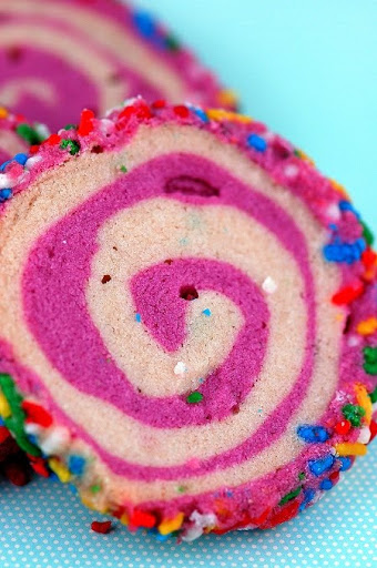 After forming the dough into a log, throw away the waxed paper. Gently lift the log on top of the sprinkles and roll until the log is completely coated. Wrap the log in plastic wrap and refrigerate until firm enough to slice (about 4 hours).