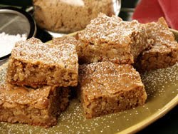4.Bake 35 to 40 minutes. Cool in pan then cut into squares and sprinkle with confectioners' sugar, if desired