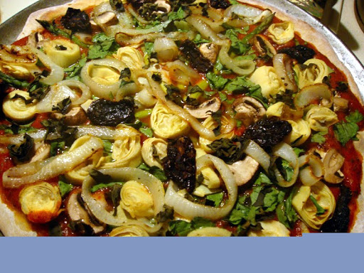 Artichoke, Asparagus, Spinach, Sun-dried Tomato, Mushroom, Onion Pizza