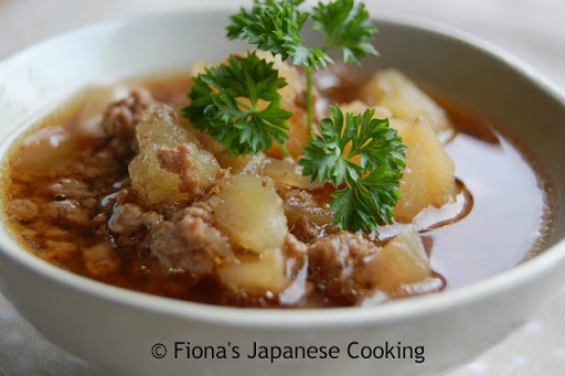 Heat the oil in a large saucepan. Stir-fry the potatoes, add the onions and beef and cook for a few minutes. Add the grated ginger at this stage if you are using it.