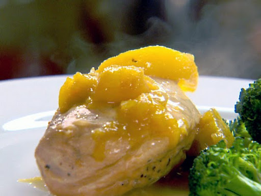 Add the ginger and garlic to the pan and cook, stirring, for 30 seconds. Add the chicken broth, the soy sauce mixture, and the peaches to the pan. Turn the heat up to high and cook, uncovered, for about 6 minutes, stirring occasionally until the sauce is nicely thickened and the peaches soften. Add the chicken back to the pan with the sauce, turn the heat down to moderate-low, cover and cook for about 5 minutes, or until chicken is cooked through.